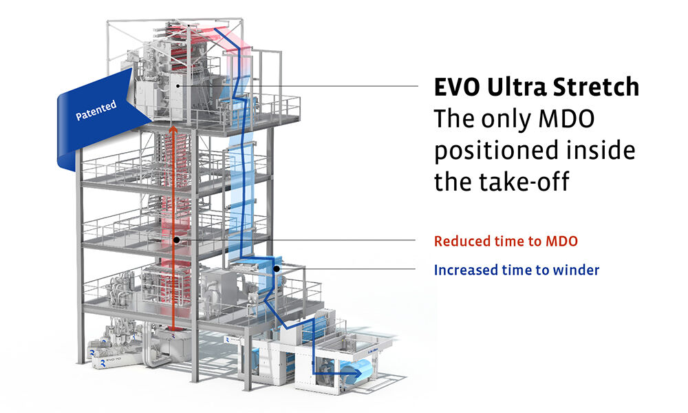 Eine Reifenhäuser EVO Blasfolienanlage mit der EVO Ultra Stretch MDO Technologie.