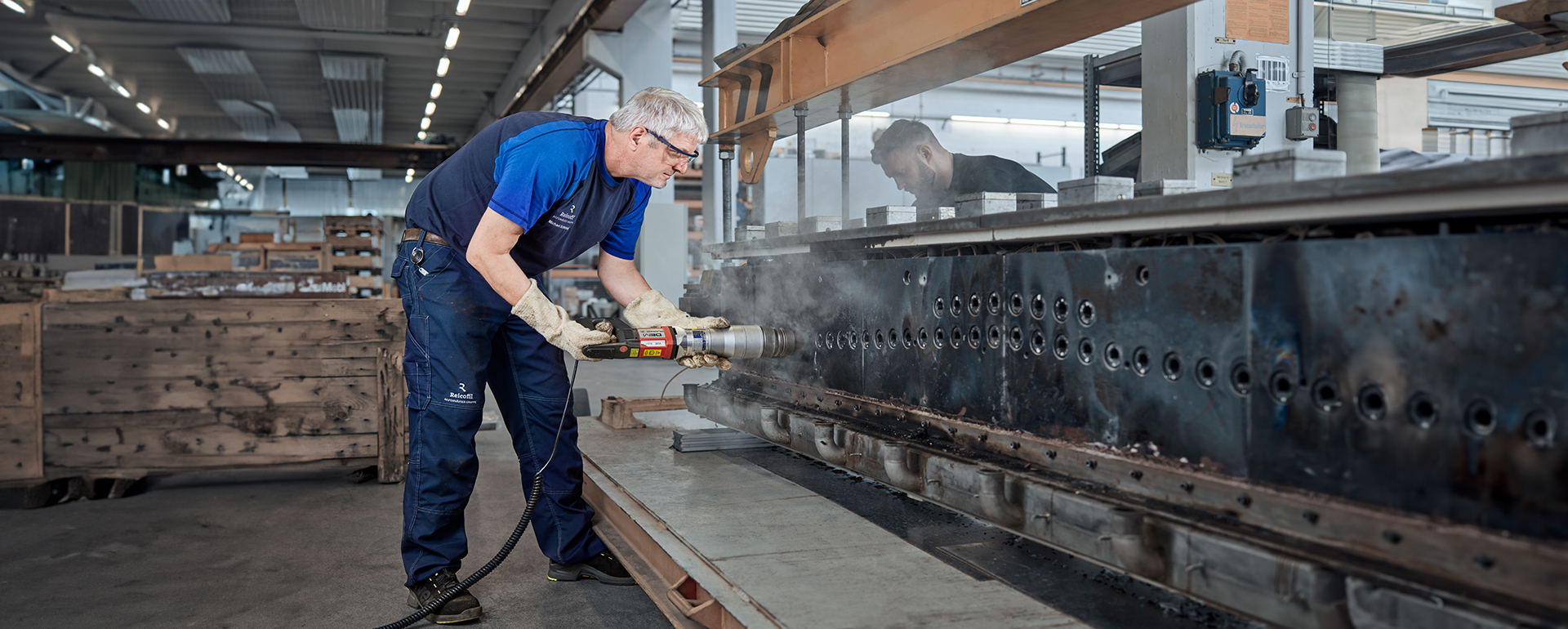 In den meisten Fällen fahren die Service-Techniker zum Vliesstoffhersteller und reinigen während eines geplanten Anlagenstillstands die Düse oder auch mehrere Düsen gleichzeitig. Reifenhäuser schickt vorab eine Checkliste, die Herstellern zeigt, was sie vorbereiten müssen, etwa Abstellflächen für die Düsen und die Einplanung von ausreichend Personal zur Unterstützung. Die Düse wird zunächst demontiert, auseinandergebaut und dann gereinigt und poliert, wieder zusammengesetzt, eingebaut und ausgerichtet. Der ganze Prozess dauert in der Regel fünf bis sieben Tage.