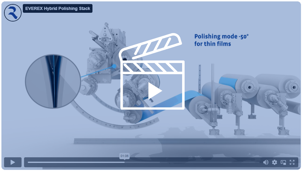Deshalb haben die Spezialisten von Reifenhäuser Cast Sheet Coating nun ein neues 4-in-1 Glättwerk entwickelt, das die Vorteile von klassischer Walzentechnologie mit einer Luftschlitzdüse verbindet. Das patentierte EVEREX HYBRID Glättwerk besteht aus drei Walzen und einer Luftschlitzdüse, die je nach Bedarf zugeschaltet werden kann. „Das Besondere beim EVEREX HYBRID Glättwerk ist die flexibel schwenkbare dritte Walze, die eine große Bandbreite an Foliendicken ermöglich“, sagt Subel.
