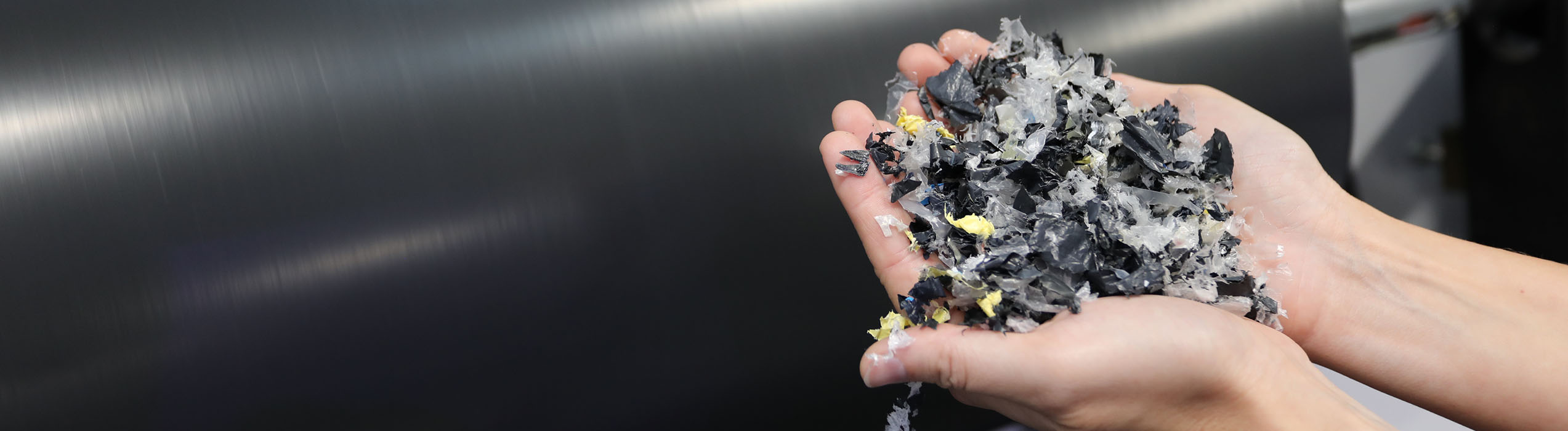 Produktionsreste von Duplex-Laminaten bestehen aus Rohstoffen unterschiedlicher Materialklassen, beispielsweise PET und PE, oft ergänzt um Fremdstoffe wie Druckfarben und Klebstoffe. Durch die EVO Fusion-Technologie können diese Folienschnipsel zu Laminierfolie für Standbodenbeutel mit einem Rezyklatanteil von bis zu 60 Prozent verarbeitet werden.