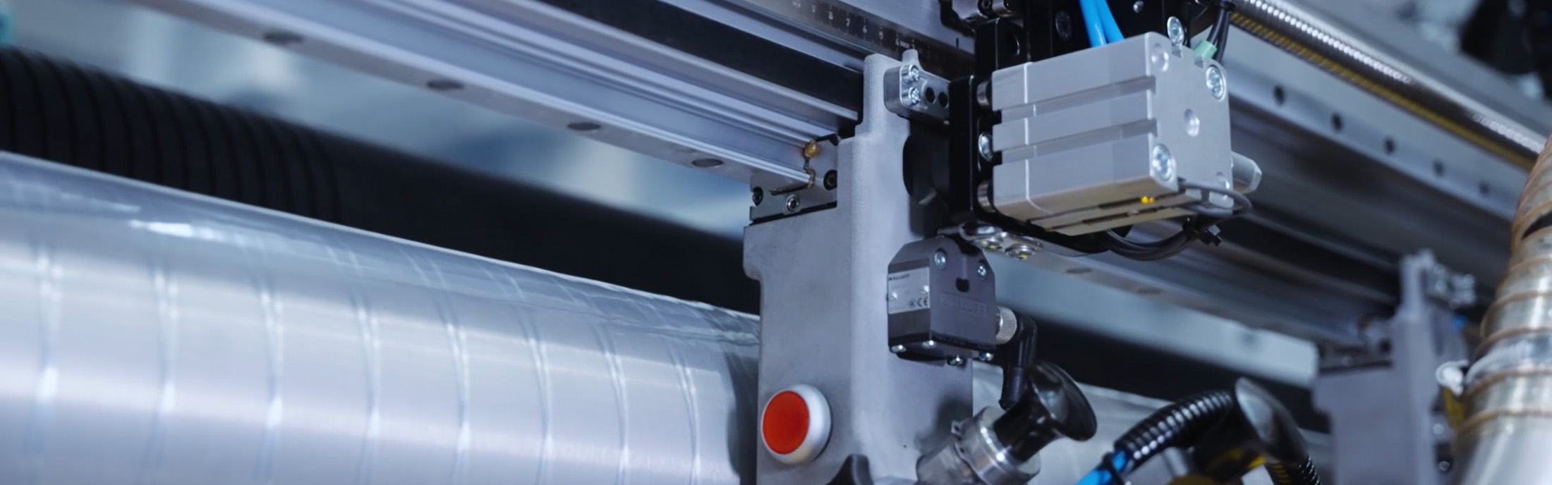 Die automatisierte Reifenhäuser-Lösung integriert den Endbeschnitt in den Wickler. So lassen sich die Folien auf genau die Breite zuschneiden, die die Abnehmer benötigen. Reifenhäuser hat hierfür ein 3D-gedrucktes Großgehäuse konzipiert, in dem alle notwendigen Komponenten integriert sind. Eine ebenso einfache wie platz- und kostensparende Lösung. Nicht zuletzt, da sämtliche – pneumatisch gesteuerten – Messer für Quer- wie Längsschnitte von einem einzigen Elektromotor angetrieben werden. Ein Pluspunkt in Sachen Energieeffizienz.