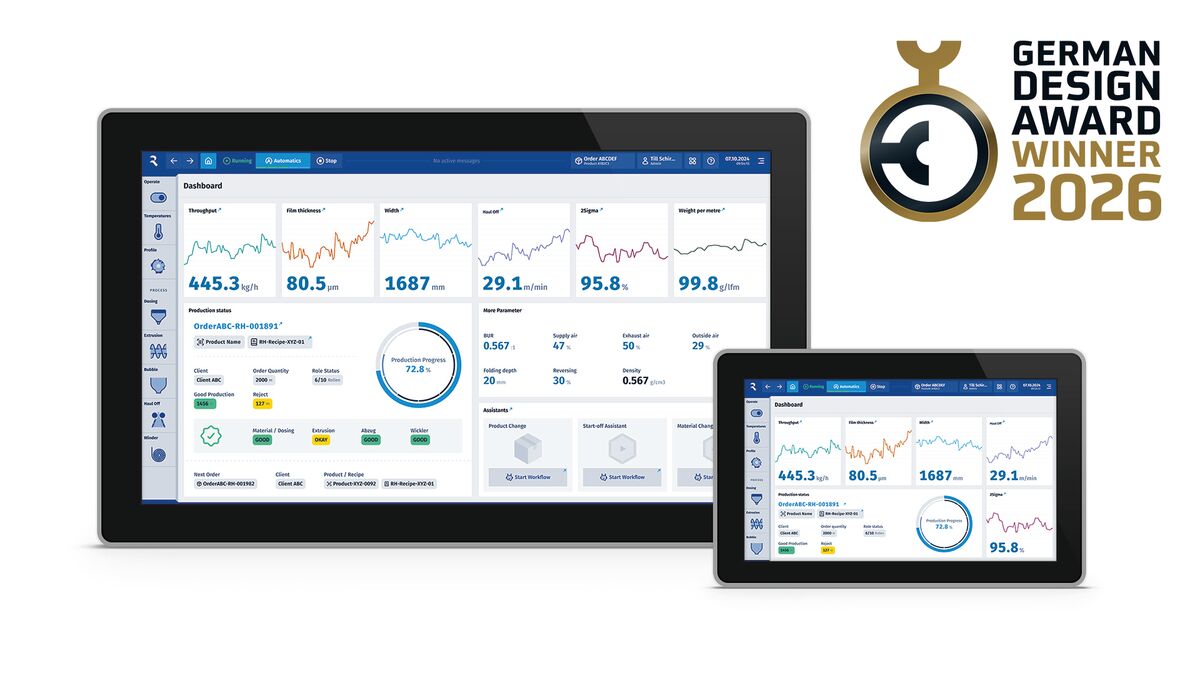 At K 2025 in Duesseldorf, the Reifenhäuser Group unveiled its new company-wide machine user interface, which offers a uniform design language for blown film, flat film, and nonwoven lines, as well as particularly simple operation. The overall concept impressed not only customers, but also the jury of the German Design Awards, who honored the system with the prestigious design award during the trade fair.